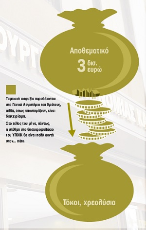Βέβαια, στη σκιά της ταμειακής διαχείρισης των διαθεσίμων του Δημοσίου υπάρχει και χρησιμοποιείται εντελώς βραχυπρόθεσμα και το «μαξιλάρι» των διαθεσίμων του ΤΧΣ. Όπως αναφέρεται αρμοδίως, η περιορισμένη χρήση των διαθεσίμων του ΤΧΣ γίνεται σε εξαιρετικά επείγουσες καταστάσεις και «τα χρήματα επιστρέφονται σε διάστημα εβδομάδων ή μήνα το πολύ», με τη βοήθεια εκδόσεων εντόκων γραμματίων.
