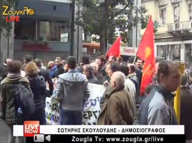 Οι Γερμανοί έρχονται και η αστυνομία απαγορεύει όλες τις πορείες και συγκεντρώσεις στην Αθήνα. Εκπαιδευτικοί, ΠΟΕ-ΟΤΑ, το ΠΑΜΕ πραγματοποιεί τις συγκεντρώσεις παρά την τρομοκρατία της ΕΛ.ΑΣ. Η ΟΛΜΕ με την ΠΟΕ - ΟΤΑ καλεί στις 12:30 στην πλατεία Κλαυθμώνος.Υπενθυμίζεται ότι οι συγκεντρώσεις και οι πορείες στο κέντρο της Αθήνας είναι απαγορευμένες την Πέμπτη, λόγω της επίσημης επίσκεψης του Προέδρου της Ομοσπονδιακής Δημοκρατίας της Γερμανίας, Γιοακίμ Γκάουγκ. Το alfavita.gr παρακολουθεί τις κινητοποιήσεις και ενημερώνει ζωντανά. (κεντρική φωτογραφία από Makissinodinos)